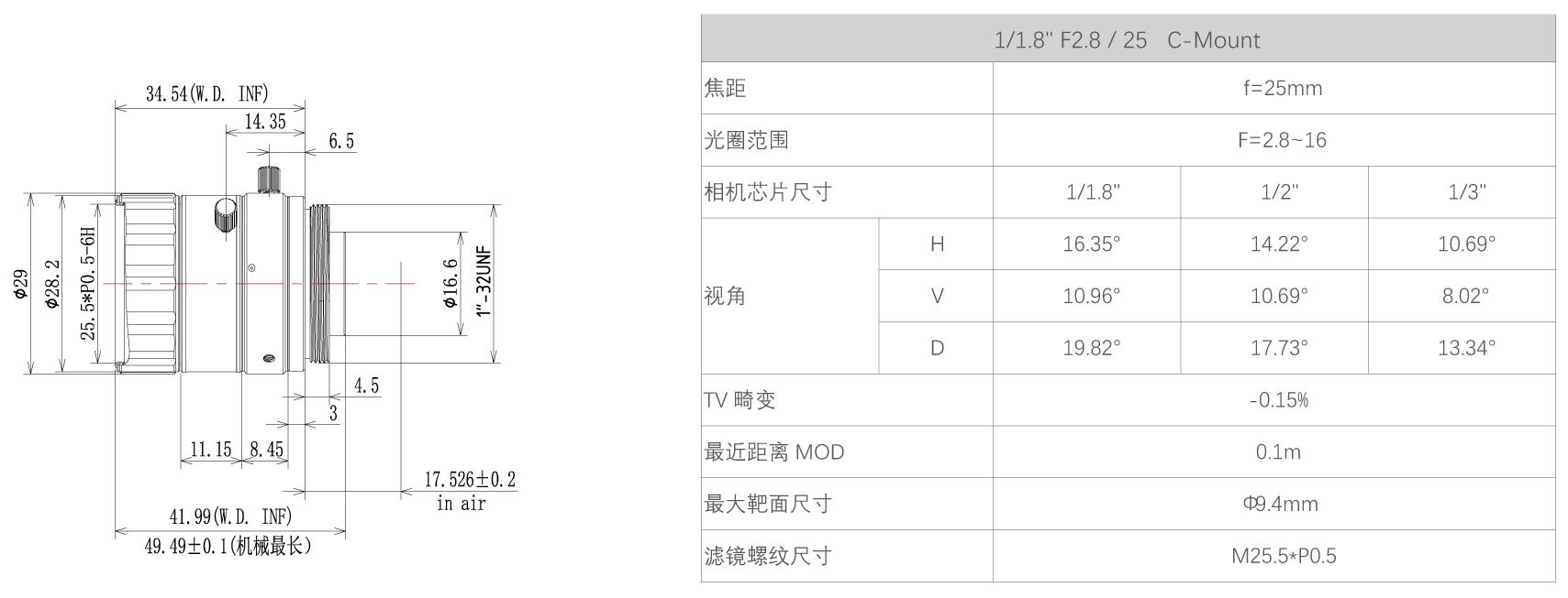 工業(yè)成像鏡頭MFA118-S25
